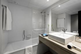 Værelserne er lyse og moderne og indeholder alle balkon, aircondition, minibar, hårtørrer, tv samt eget bad og toilet.